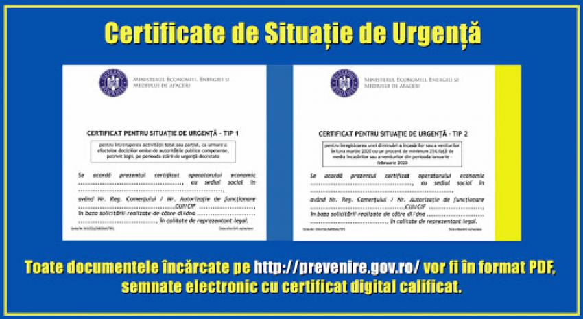 Măsura vine în sprijinul IMM-urilor care vor accesa granturile de finanțare ce urmează să fie lansate prin Programul Operațional Competitivitate. Conform proiectului de ordonanță de urgență pentru acordarea de sprijin financiar IMMurilor în contextul crizei COVID-19, pentru accesarea granturilor pentru capital de lucru va fi obligatoriu ca firmele să prezinte un Certificat de situații de urgență. S-a constatat că multe firme afectate de pandemie nu ar fi putut fi eligibile în cadrul acestui program dincauza faptului că aplicația prin care erau emise Certificatele pentru Situații de Urgență nu mai este funcțională.