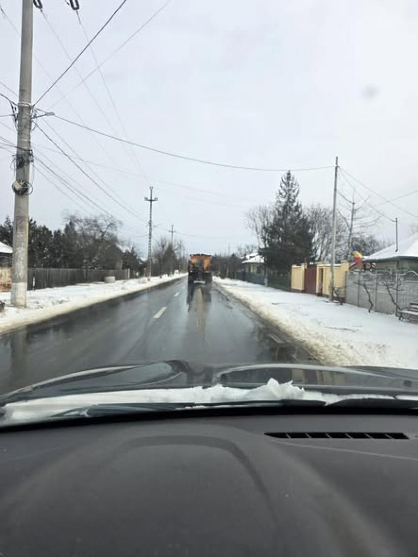 Utilajele au îndepărtat zăpada depusă pe carosabil și au imprăștiat material antiderapant astfel ca participanții la trafic să poată circula în condiții de siguranță.Carosabilul este practicabil.