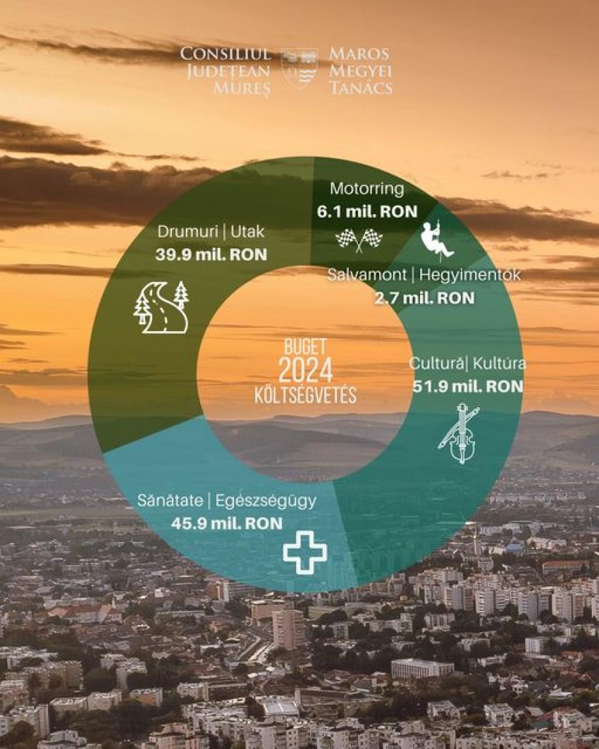 Oficialul mureșean a precizat cuantumul sumelor alocate dezvoltării din bugetul propriu a Consiliului Județean Mureș și direcțiile principale vizate. Astfel: